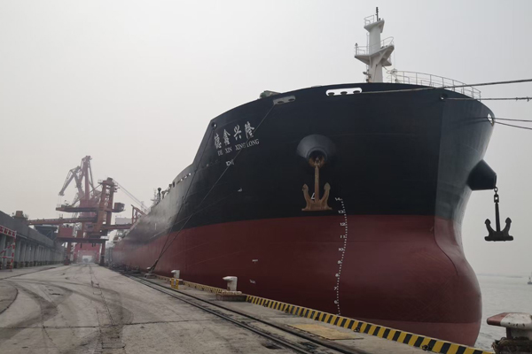 揚(yáng)州海昌首次完成5萬噸級散貨海輪裝船作業(yè)