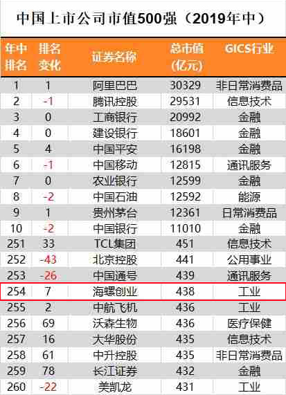海螺創(chuàng)業(yè)以總市值438億元人民幣再次入圍中國上市公司500強(qiáng)名單,位列254位,排名提升了7位