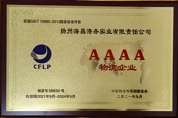 揚(yáng)州海昌榮獲“國家AAAA級(jí)物流企業(yè)” 認(rèn)定