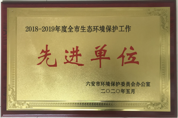 金寨海創(chuàng)榮獲“六安市生態(tài)環(huán)境保護(hù)工作先進(jìn)單位”榮譽(yù)稱號(hào)
