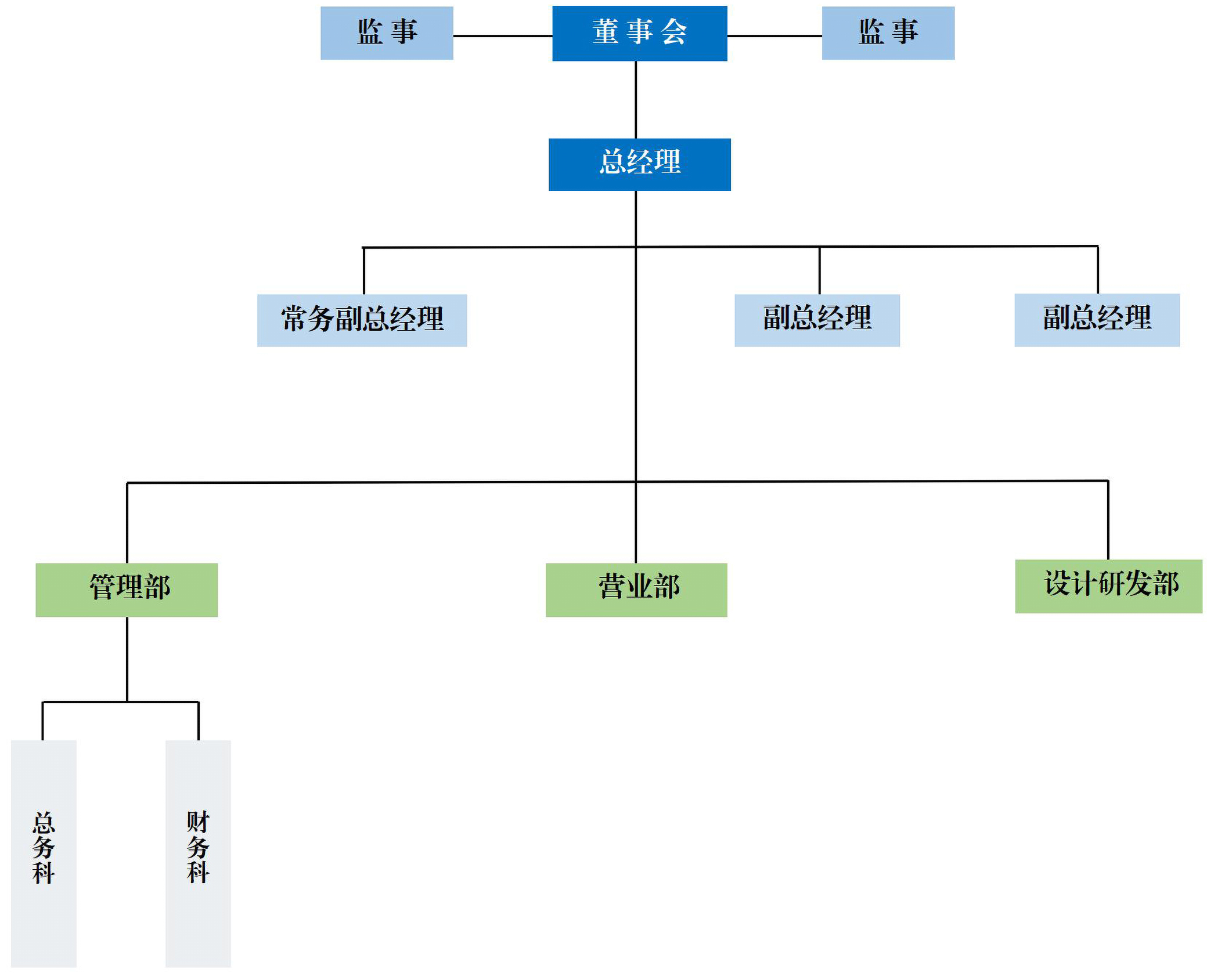?公司下設:管理部、財務部、營業(yè)部、海外營業(yè)部、品質(zhì)部、采購部、工程部、設計部共8個部門。