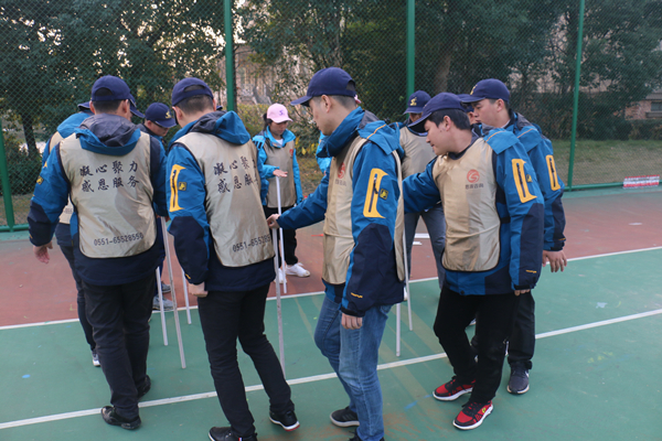 ? ? 在接下來的各個拓展項目中,大家共同配合,攻克了一個個看似不可能完成的項目,每個項目結(jié)束后大家共同分享了成功的喜悅和挑戰(zhàn)的激情,充分地體會到了團隊信任、有效溝通、換位思考、合理組織、領(lǐng)導(dǎo)力、執(zhí)行力和團隊協(xié)作等和工作息息相關(guān)的管理意識。