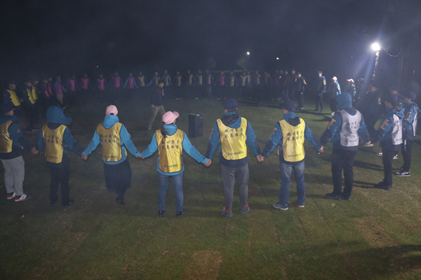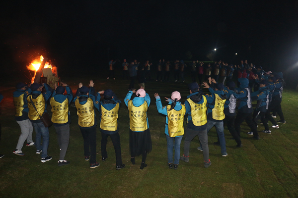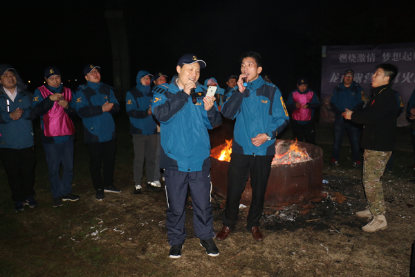 ? ? 銀星璀璨、皓月當(dāng)空,工作人員手持火把點燃了篝火,拉開了篝火晚會的序幕,晚會內(nèi)容豐富多樣,各隊伍熱情參與,準(zhǔn)備了雙簧、舞蹈及個人獨唱等多個節(jié)目,各隊熱情的表演贏得了大家的陣陣叫好聲,晚會最后在“明天會更好”大合唱中落下帷幕。