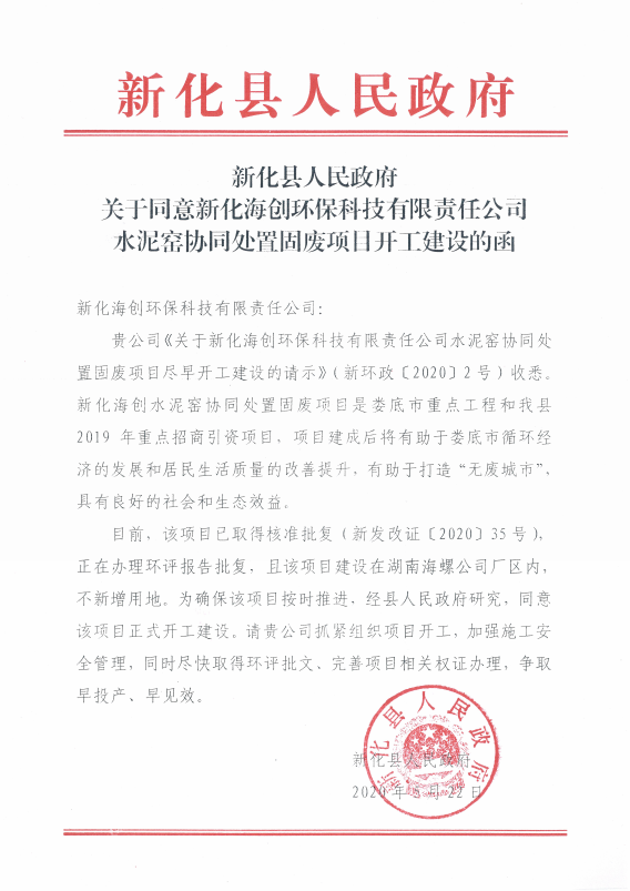 2020年5月22日取得新化縣人民政府同意項(xiàng)目開工建設(shè)的函