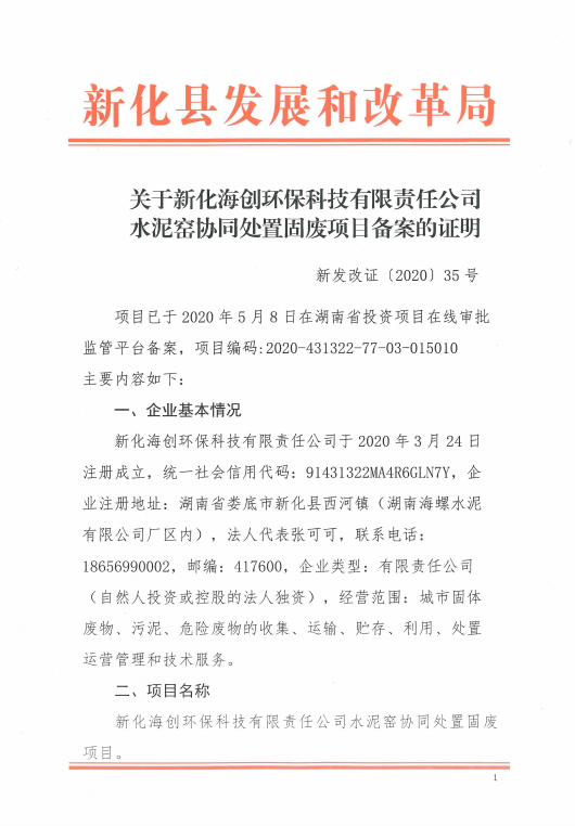 新化海創(chuàng)水泥窯協(xié)同處置固廢項(xiàng)目是新化縣2019年重點(diǎn)招商引資項(xiàng)目,項(xiàng)目于2019年12月23日簽署合作協(xié)議,計(jì)劃投資2.2億元,擬建設(shè)150t/d飛灰水洗水處理處置生產(chǎn)線和200t/d污泥處置系統(tǒng),年可處置飛灰4.95萬噸、污泥等一般固廢6.6萬噸。2020年3月24日公司注冊(cè)成立。自新化海創(chuàng)成立以來,在地方政府及母公司的大力支持和高度重視下,克服疫情影響、戰(zhàn)勝重重阻力,科學(xué)統(tǒng)籌、精準(zhǔn)施策,加大對(duì)外協(xié)調(diào)力度,于5月9日取得核準(zhǔn)備案批復(fù),5月22日取得新化縣政府《關(guān)于同意項(xiàng)目開工建設(shè)的函》。項(xiàng)目從簽約到建設(shè),僅歷時(shí)半年,建成后將與祁陽、臨湘、益陽等項(xiàng)目發(fā)揮協(xié)同效應(yīng)。下一步,新化海創(chuàng)將盡快完成項(xiàng)目環(huán)評(píng)工作,穩(wěn)步推進(jìn)權(quán)證辦理,盡早啟動(dòng)工程建設(shè),以只爭朝夕、奮發(fā)有為的姿態(tài),確保實(shí)現(xiàn)項(xiàng)目早竣工、早投產(chǎn)、早受益,助力地方政府打造"無廢城市",推動(dòng)縣域經(jīng)濟(jì)綠色生態(tài)高質(zhì)量發(fā)展和人居環(huán)境的改善作出貢獻(xiàn),為海螺創(chuàng)業(yè)的發(fā)展壯大添磚加瓦。