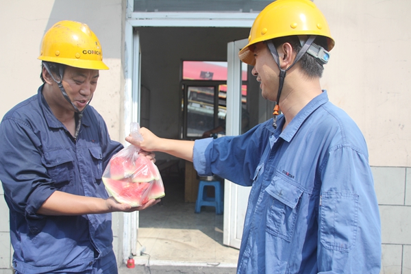 ? ? 一是定期組織開(kāi)展現(xiàn)場(chǎng)夏季送清涼活動(dòng)。統(tǒng)一購(gòu)買了西瓜、人丹等防暑降溫用品發(fā)放至每位員工,給一線員工送上夏日的清涼。