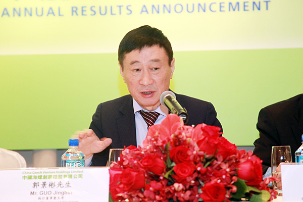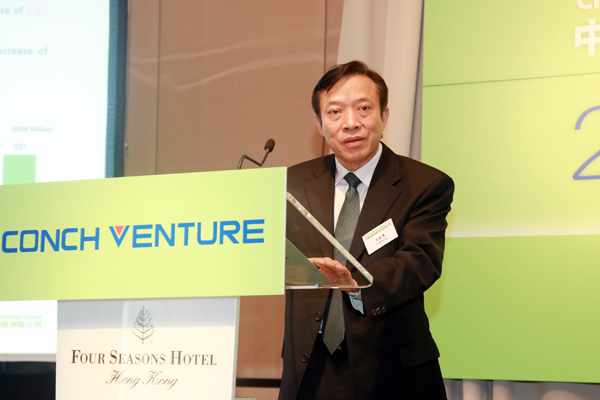 ? ? 海螺創(chuàng)業(yè)2014年度綜合業(yè)績一經(jīng)公布,便引起市場廣泛關(guān)注。為向投資者展示公司良好的經(jīng)營業(yè)績以及各產(chǎn)業(yè)板塊的發(fā)展前景,加強與投資者的溝通交流,海螺創(chuàng)業(yè)于3月25日在香港四季酒店舉行了業(yè)績發(fā)布會,公司董事長郭景彬、總經(jīng)理紀(jì)勤應(yīng)、董事會秘書疏茂、財務(wù)部副部長陳興強等出席了發(fā)布會,近百余名來自各大投資機構(gòu)的投資者及分析員前來參會。