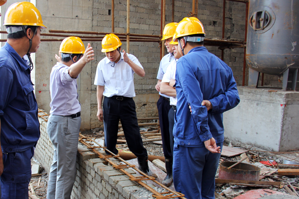 ? ? 10月1日上午,在金寨公司現(xiàn)場管理人員陪同下,紀(jì)總一行從進(jìn)廠道路開始,對整個建設(shè)工程進(jìn)行了全面檢查,并對存在的問題現(xiàn)場進(jìn)行了研討,明確了意見。