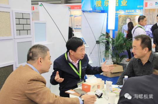 ? ? 期間,海螺創(chuàng)業(yè)董事長郭景彬在董事會秘書疏茂的陪同下,到公司現(xiàn)場展臺參觀指導(dǎo)工作。安徽海創(chuàng)新材料公司總經(jīng)理助理程州向郭董事長一行介紹匯報了展會及公司展臺反響情況,并陪同郭董事長一行與上海君軒節(jié)能科技發(fā)展有限公司董事長胡鴻俊先生以及來訪的中國新型建材部部長王新捷先生探討交流了新型建材及住宅產(chǎn)業(yè)化等相關(guān)發(fā)展情況。