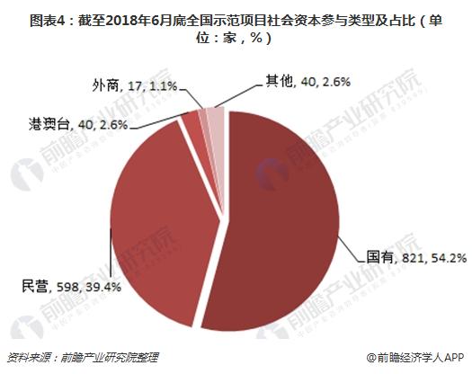 ? ? PPP模式發(fā)展的目的一是鼓勵(lì)社會(huì)資本參與到公共基礎(chǔ)設(shè)施項(xiàng)目的建設(shè)中,加快城市化進(jìn)程;二是拓寬公共基礎(chǔ)設(shè)施建設(shè)項(xiàng)目融資渠道的同時(shí),讓社會(huì)資本參與建設(shè)。從全國(guó)落地示范項(xiàng)目合作主體來(lái)看,民營(yíng)企業(yè)積極參與了PPP項(xiàng)目的建設(shè),截至2018年6月底,866個(gè)落地示范項(xiàng)目中包括448個(gè)獨(dú)家社會(huì)資本項(xiàng)目和418個(gè)聯(lián)合體項(xiàng)目。簽約社會(huì)資本共1516家,包括民營(yíng)598家、港澳臺(tái)40家、外商17家、國(guó)有821家,另有類型不易辨別的其他40家,其中民營(yíng)企業(yè)占比39.4%,僅次于國(guó)有企業(yè)。