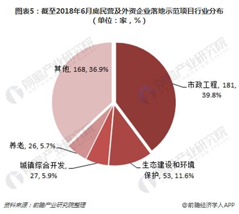 ? ? 從民營(yíng)企業(yè)參與行業(yè)來(lái)看,截至2018年6月底,866個(gè)落地示范項(xiàng)目中,民營(yíng)的非聯(lián)合體項(xiàng)目以及含民營(yíng)、港澳臺(tái)及外資的聯(lián)合體兩類項(xiàng)目數(shù)合計(jì)455個(gè),占落地項(xiàng)目數(shù)的52.5%。民企參與的行業(yè)涵蓋全部19個(gè)行業(yè),其中市政工程181個(gè),占比39.8%;生態(tài)建設(shè)和環(huán)境保護(hù)53個(gè),占比11.6%;城鎮(zhèn)綜合開(kāi)發(fā)27個(gè),占比5.9%;養(yǎng)老26個(gè),占比5.7%,其余皆為25個(gè)以下。