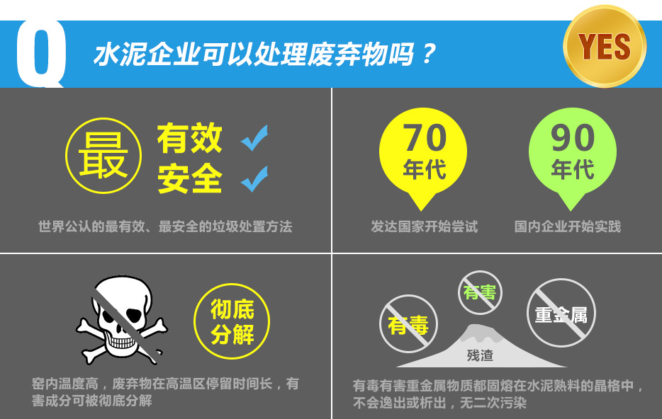 ? ?[核心提示]水泥窯協(xié)同處置廢棄物是世界公認的最有效、最安全的垃圾處置方法。上世紀70年代,發(fā)達國家開始嘗試; 90年代國內企業(yè)開始實踐。在水泥生產(chǎn)過程中,利用窯內高溫,廢棄物在高溫區(qū)停留時間長,有害成分可被徹底分解,同時,殘渣中的硫、氯或重金屬等有害物質可固熔在熟料的晶格中,無二次污染。
