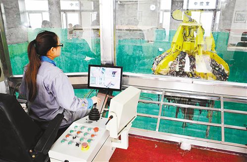 ? ? 5月12日,記者在海螺水泥公司的忠縣綜合處理生活垃圾現(xiàn)場看到,一輛輛裝滿壓縮垃圾的環(huán)衛(wèi)車過磅計量后,進入兩道電動密閉門將垃圾倒入一個巨大的垃圾儲坑??永锩?,一只巨大的“手”上下擺動,抓起一把把垃圾直接丟進焚燒爐。
