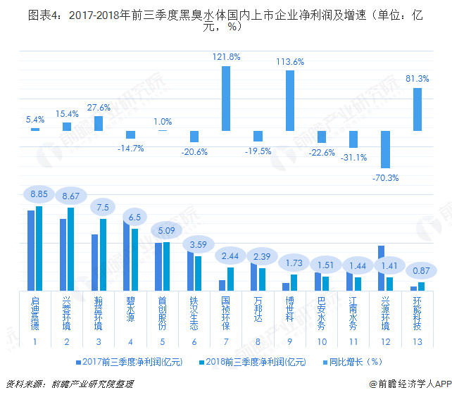 ? ? 前瞻產(chǎn)業(yè)研究院發(fā)布的《中國黑臭水體治理行業(yè)發(fā)展前景預(yù)測與投資戰(zhàn)略規(guī)劃分析報告》對黑臭水體治理產(chǎn)業(yè)鏈中的上市企業(yè)進(jìn)行了深入解讀。整體來看,國內(nèi)具備整合設(shè)計、建設(shè)、融投資和運(yùn)營能力的環(huán)境治理運(yùn)營商較少,參與黑臭水體治理的合格運(yùn)營商數(shù)量較為有限。根據(jù)前瞻產(chǎn)業(yè)研究院的整理,目前在黑臭水體治理走在全國前列的環(huán)保企業(yè)主要有A股上市企業(yè)碧水源、啟迪桑德、首創(chuàng)股份、鐵漢生態(tài)、瀚藍(lán)環(huán)境、興蓉環(huán)境等,港股上市企業(yè)主要有康達(dá)國際環(huán)保,天津創(chuàng)業(yè)環(huán)保集團(tuán)。
