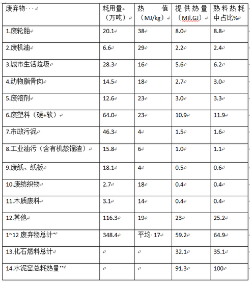 ? ? 2.擴(kuò)大協(xié)同處置廢棄物的品種,開拓高熱值廢料利用,力爭加速提升水泥工業(yè)的熱量替代率TSR