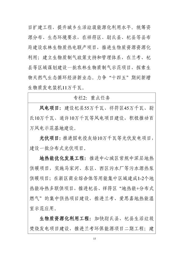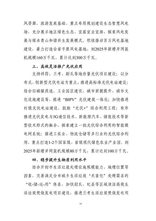 日前,河南開封就《開封市“十四五”現(xiàn)代能源體系和碳達峰碳中和規(guī)劃(征求意見稿)》公開征求意見,該規(guī)劃指出,穩(wěn)步提升生物質(zhì)利用水平,結(jié)合開封市生活垃圾處理設(shè)施規(guī)模能力、地理位置等因素,完善滿足全市城鄉(xiāng)生活垃圾“無害化”處理需求的“收-儲-運-用”體系,加快尉氏、杞縣等區(qū)域清潔高效生活垃圾焚燒發(fā)電項目建設(shè),推進蘭考生活垃圾焚燒發(fā)電項目擴建工程,提升城鄉(xiāng)生活垃圾能源化利用水平。統(tǒng)籌資源分布、生態(tài)環(huán)境要求,在祥符區(qū)、尉氏縣、杞縣等縣布 局建設(shè)農(nóng)林生物質(zhì)熱電聯(lián)產(chǎn)項目,推進生物質(zhì)資源資源化利用;建立生物質(zhì)制氣政策支持和管理體系,在蘭考、杞縣等區(qū)域謀劃建設(shè)一批農(nóng)林生物質(zhì)制氣示范項目,探索生物天然氣生態(tài)循環(huán)經(jīng)濟新業(yè)態(tài)。力爭“十四五”期間新增生物質(zhì)發(fā)電裝機11萬千瓦。詳情如下: