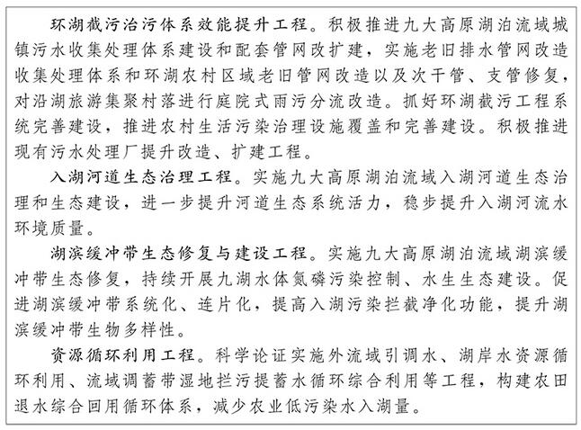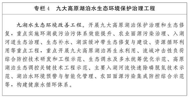 通過(guò)實(shí)施污染防治和生態(tài)修復(fù)重點(diǎn)工程,充分激發(fā)市場(chǎng)對(duì)環(huán)保技術(shù)、裝備、產(chǎn)品及服務(wù)的需求。統(tǒng)籌推進(jìn)山水林田湖草一體化保護(hù)和修復(fù)系列重點(diǎn)工程,以市場(chǎng)需求拉動(dòng)環(huán)保產(chǎn)業(yè)加快發(fā)展。重點(diǎn)流域水污染防治。統(tǒng)籌水環(huán)境保護(hù)、水生態(tài)修復(fù)、水資源利用,重點(diǎn)實(shí)施長(zhǎng)江上游、赤水河流域(云南段)、九大高原湖泊流域、重要集中式飲用水水源地生態(tài)保護(hù)與修復(fù)工程,加快推進(jìn)農(nóng)業(yè)農(nóng)村面源污染治理,實(shí)施湖濱緩沖帶生態(tài)修復(fù)與濕地保護(hù)建設(shè),實(shí)施城市中水、雨水循環(huán)利用,工業(yè)、商業(yè)廢水回收利用等水資源循環(huán)利用工程。