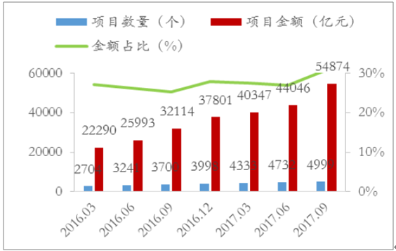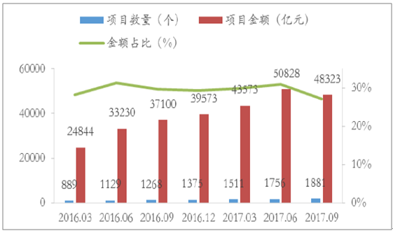 財政部PPP項(xiàng)目數(shù)量/投資額統(tǒng)計(截止2017年9月末)