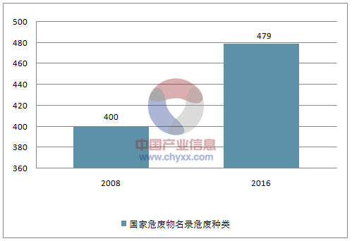 2016 年8 月,新版國家危廢名錄施行,危廢種類從400 種上升到479 種