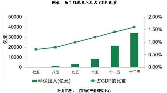 ? ? “十二五”期間環(huán)保產(chǎn)業(yè)投資額占到GDP的1.5%,投資總額將達(dá)到3.4萬(wàn)億,較“十一五”期間大幅增長(zhǎng)。