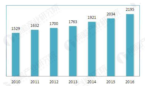 圖表3:2010-2016年全國危險廢物經(jīng)營許可證數(shù)量情況(單位:份)