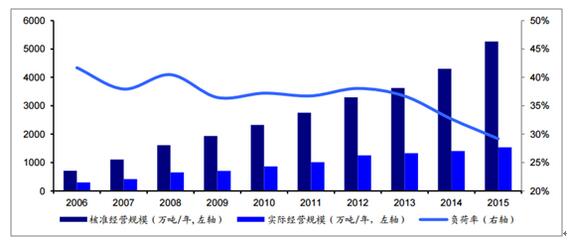 ? ? 根據(jù)《2016年全國(guó)大中城市固體廢棄物污染環(huán)境防治年報(bào)》截止2015年底,全國(guó)各?。▍^(qū)、市)頒發(fā)的危險(xiǎn)廢物(含醫(yī)療廢物)經(jīng)營(yíng)許可證2034份,全國(guó)危廢廢物經(jīng)營(yíng)單位核準(zhǔn)經(jīng)營(yíng)規(guī)模達(dá)到5263萬噸/年,從實(shí)際利用處置情況來看(持有危廢經(jīng)營(yíng)許可證的單位收集、利用、貯存及處置危險(xiǎn)廢物的實(shí)際數(shù)量,不包括單位自行利用處置的量),2015年危險(xiǎn)廢物實(shí)際經(jīng)營(yíng)規(guī)模為1536萬噸,為核準(zhǔn)利用規(guī)模的29.18%。危廢許可證處理資質(zhì)和市場(chǎng)需求的錯(cuò)配導(dǎo)致資質(zhì)的整體負(fù)荷率低下。