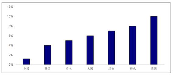 各國(guó)危廢產(chǎn)生量占固廢產(chǎn)生量比重