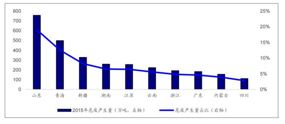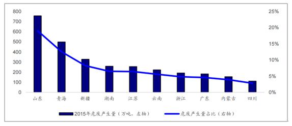 工業(yè)危廢產(chǎn)生量前十名省份危廢產(chǎn)生情況(萬噸)