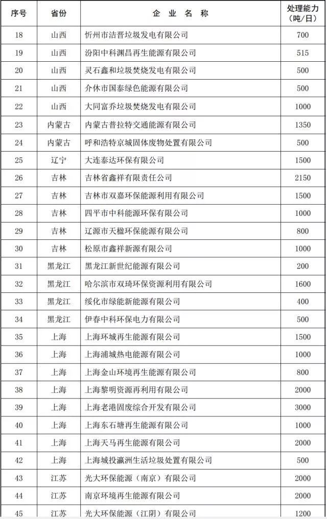 2016年底全國(guó)在運(yùn)生活垃圾焚燒發(fā)電廠清單