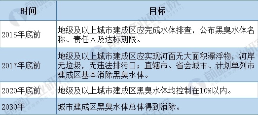 ? ? 而《水污染防治行動(dòng)計(jì)劃》明確提出,黑臭水體治理目標(biāo)要求:到2020年,地級(jí)及以上城市建成區(qū)黑臭水體均控制在10%以內(nèi);到2030年,城市建成區(qū)黑臭水體總體得到消除。