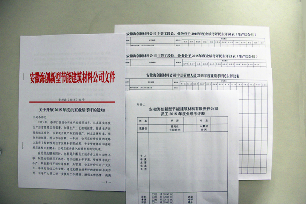 ? ? 為客觀、公正評價公司各崗位員工年度工作業(yè)績,通過發(fā)揮業(yè)績考評的激勵和導(dǎo)向作用,引導(dǎo)廣大員工進一步提升工作績效、增強工作熱情、提高履職能力,2015年12月15日至2016年元月上旬,安徽海創(chuàng)新材料公司分步組織開展了全員年度業(yè)績考評工作。