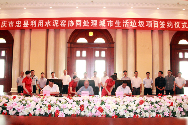 ??? 敖斌、紀勤應、張愛民分別代表忠縣政府、蕪湖海創(chuàng)實業(yè)、重慶海螺在合作協(xié)議書上簽字。協(xié)議約定:由重慶海螺公司出資,負責項目的運營、管理等工作;委托蕪湖海創(chuàng)實業(yè)公司具體建設生活垃圾處理系統(tǒng);忠縣人民政府負責重慶市、忠縣及周邊地區(qū)的垃圾收集、運輸,并給與一定垃圾處理補貼。