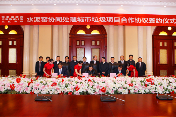 ? ? 在海螺國(guó)際會(huì)議中心東海廳舉行了臨夏州利用水泥窯協(xié)同處理城市垃圾合作項(xiàng)目協(xié)議簽字儀式,臨夏州副州長(zhǎng)魏賀生、海螺創(chuàng)業(yè)總經(jīng)理紀(jì)勤應(yīng)、臨夏海螺董事長(zhǎng)秦宏基共同簽署協(xié)議。