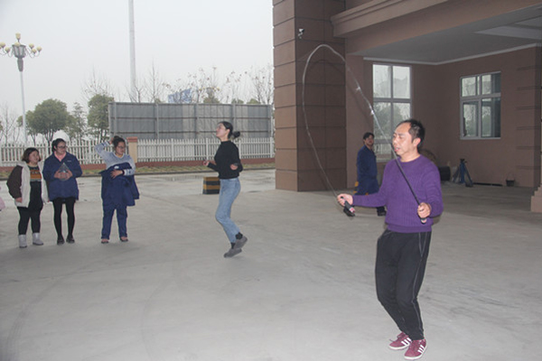 ? ? 跳繩作為一項(xiàng)有氧健身運(yùn)動(dòng)被越來(lái)越多的年輕人所推崇,賽場(chǎng)上,來(lái)自各個(gè)部門的男、女職工代表正在張羅著一場(chǎng)別開(kāi)生面的跳繩比賽。比賽限時(shí)3分鐘,以得數(shù)最多者為勝。比賽開(kāi)始了,現(xiàn)場(chǎng)氣氛熱烈非常。參賽選手各個(gè)卯足了勁兒,有的憋得面紅耳赤,有的跳得輕松自如。吶喊聲、喝彩聲響成一片。